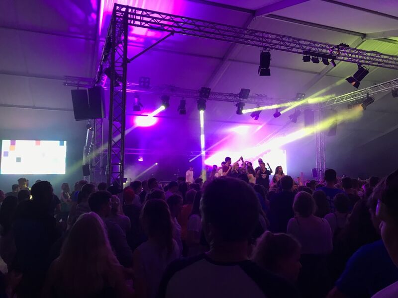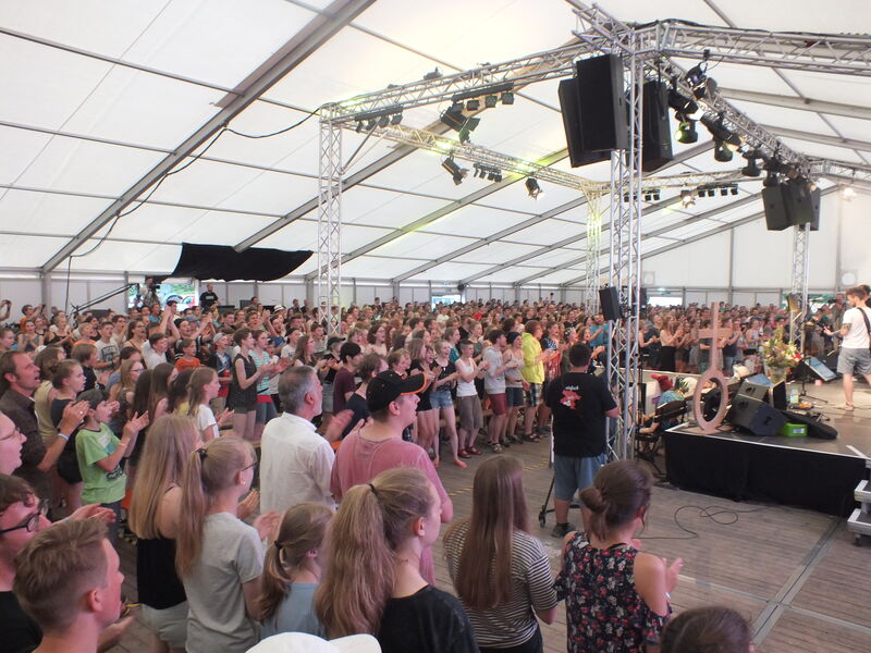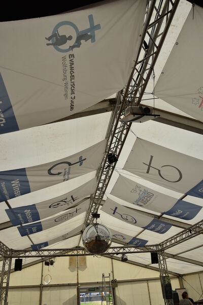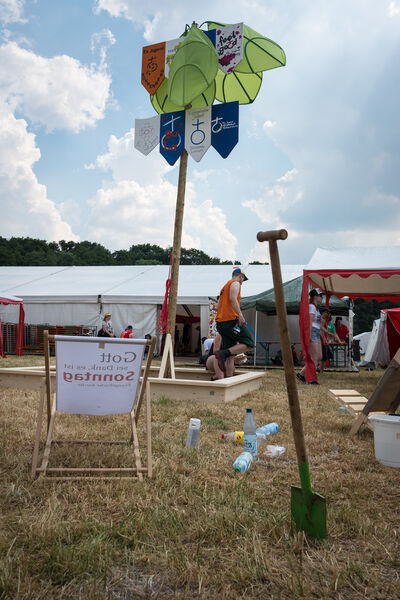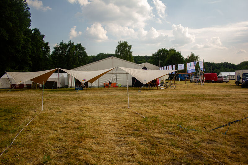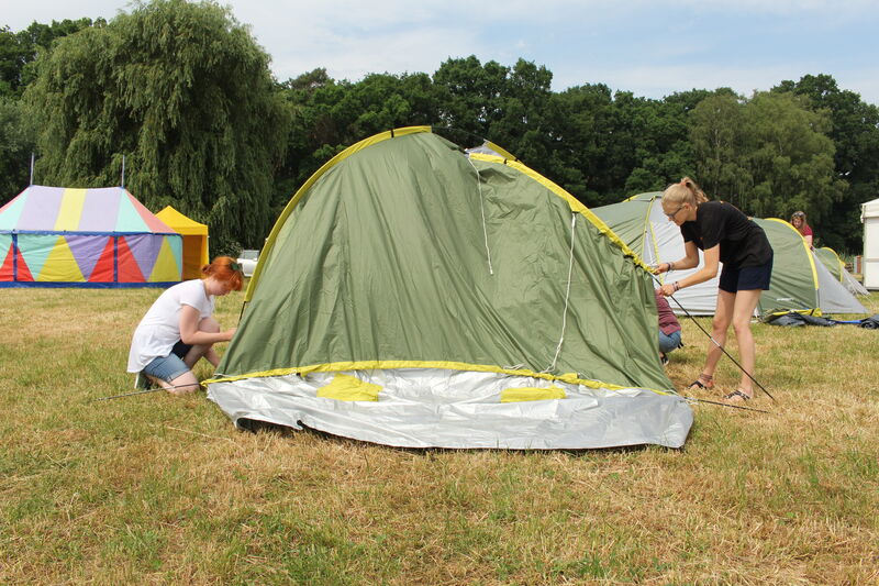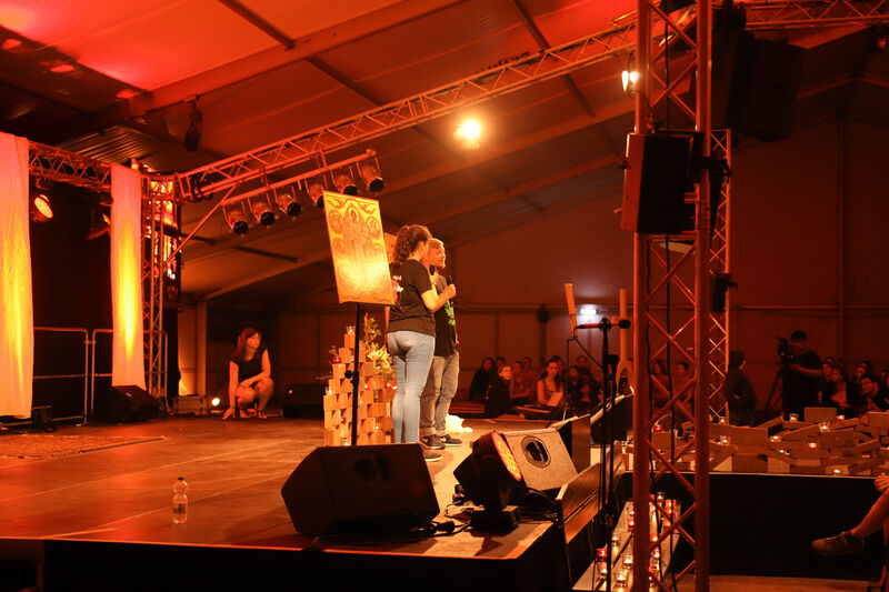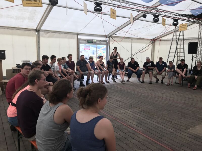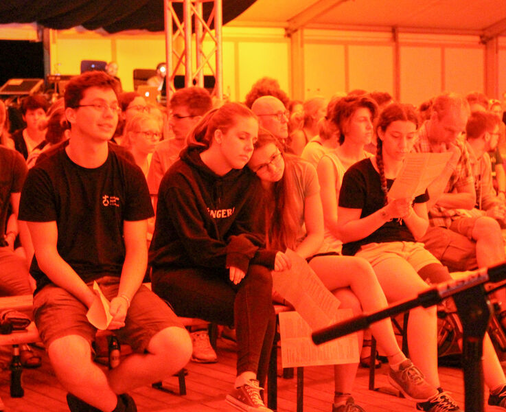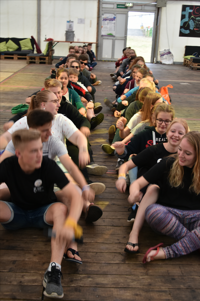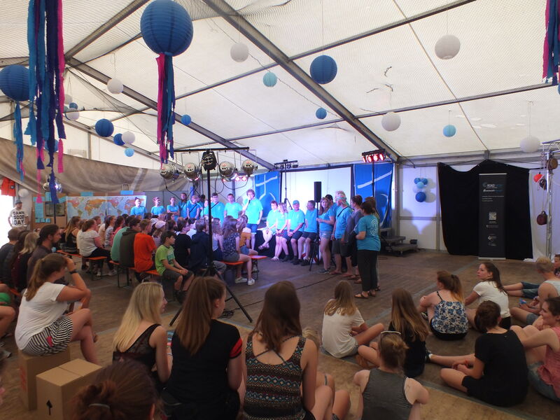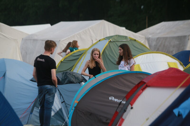 Das Camp wurde vorher von dem so genannten Vorcamp fleißig aufgebaut so dass mit der Ankunft der Teilnehmer alles los gehen konnte. Als erstes bekamen wir alle unsere Festivalbändchen und konnten anschließend unsere Zelte beziehen. Als alle ihren Platz gefunden hatten, gab es ein kurzes einfaches Abendbrot, wo die ersten wichtigen Informationen für das Wochenende geklärt wurden. Um 19:30 Uhr gab es dann im Großzelt die offizielle Eröffnung des diesjährigen Camp. Im Anschluss darauf gab es die Möglichkeit das Campgelände zu erkunden und in den unterschiedlichen Sprengeln die unterschiedlichen Angebote wie die Silentparty im Sprengel Stade oder die Disco in unserem Lüneburger Sprengel auszuprobieren. Um 23:00 Uhr herrschte im Großzelt eine ruhige Atmosphäre. Der Taizè Gottesdienst fand statt und lockte vorallem die, die bereits in Taizè waren an.