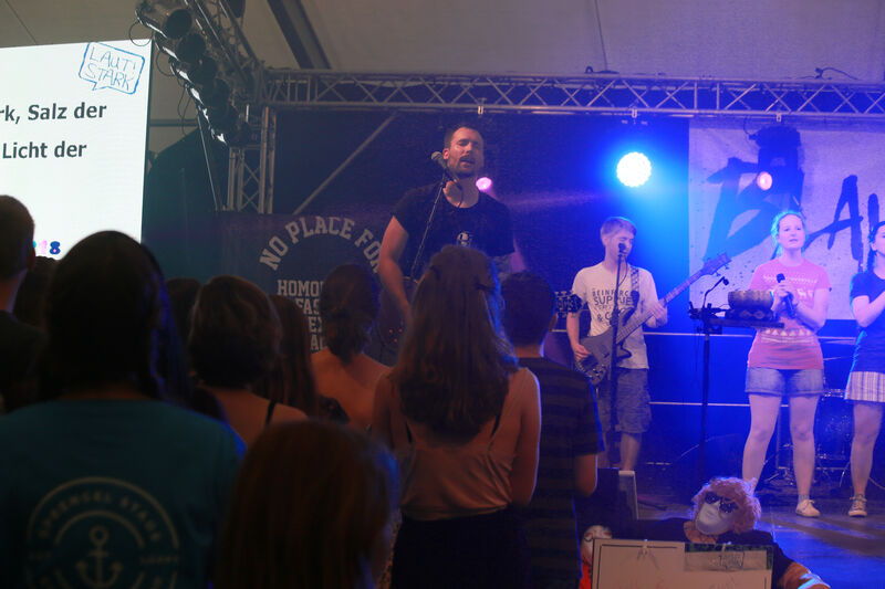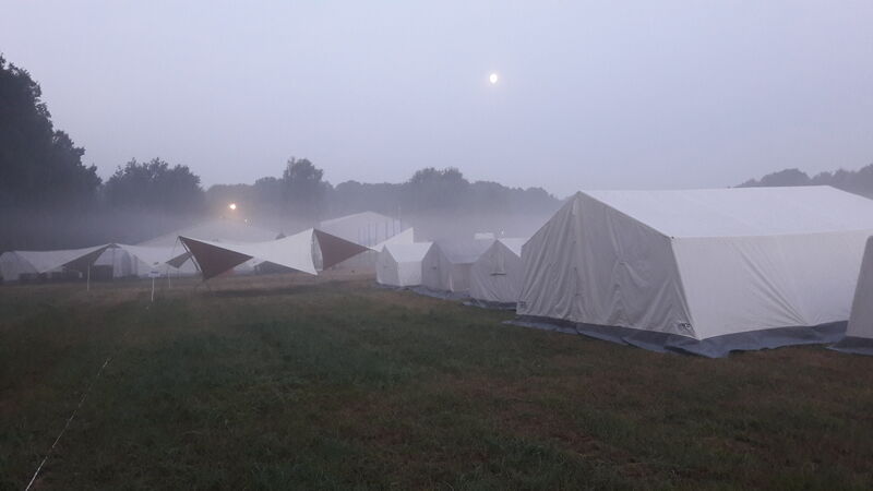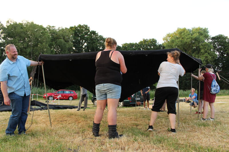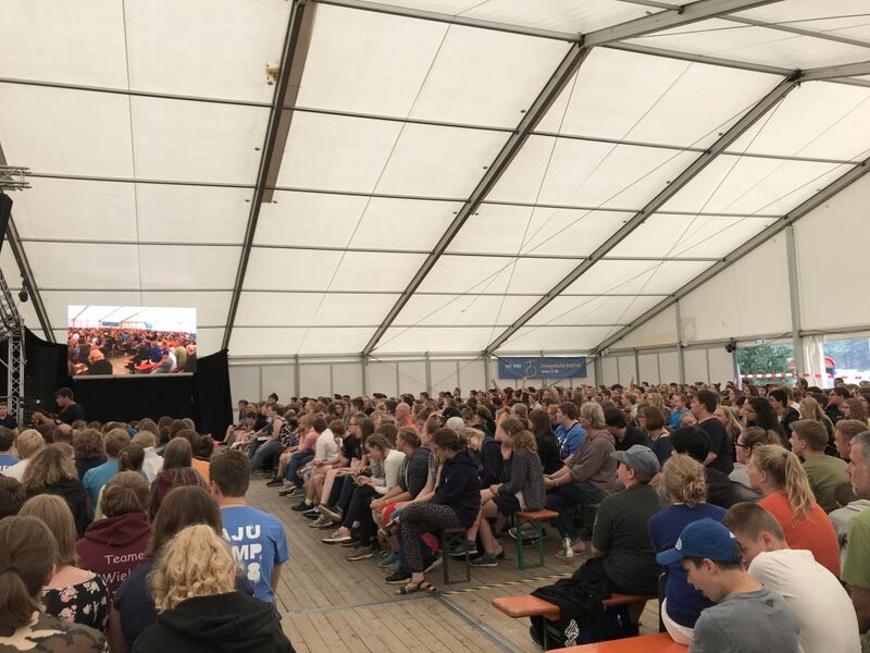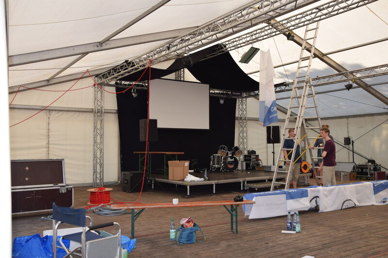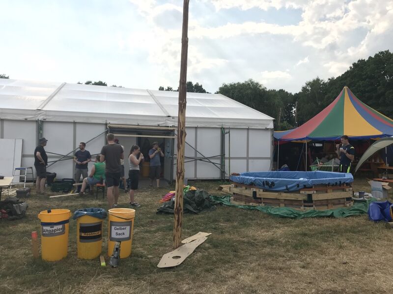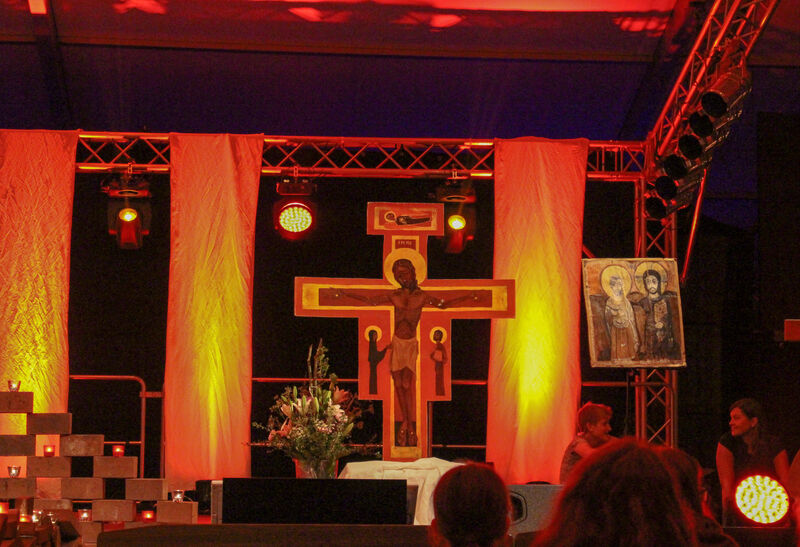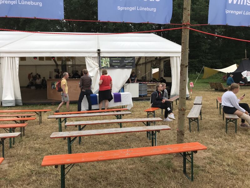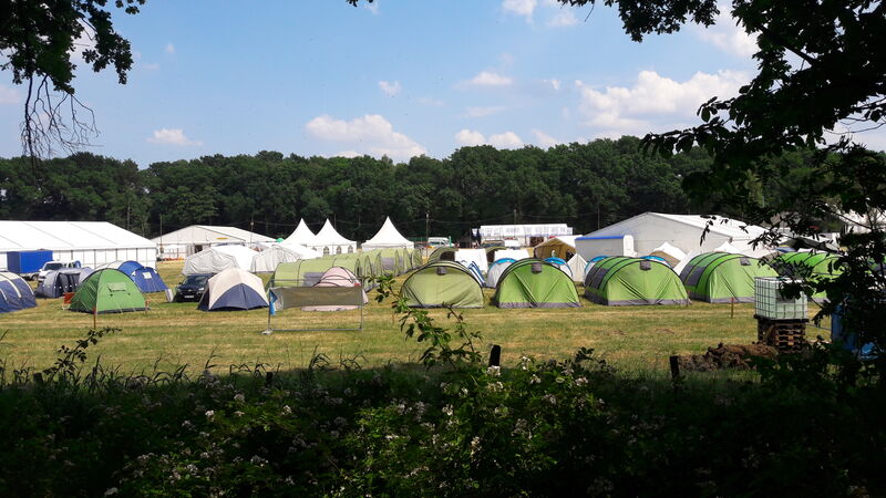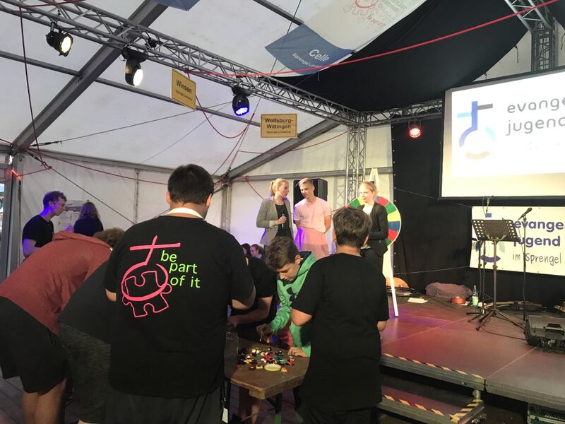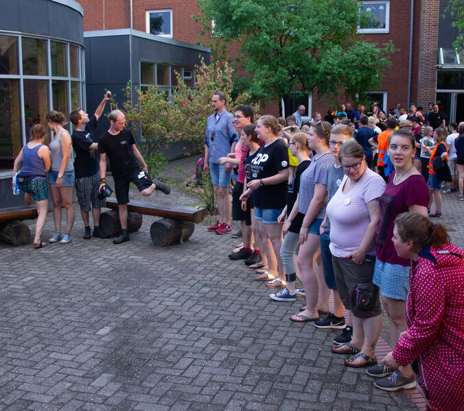 Das Camp wurde vorher von dem so genannten Vorcamp fleißig aufgebaut so dass mit der Ankunft der Teilnehmer alles los gehen konnte. Als erstes bekamen wir alle unsere Festivalbändchen und konnten anschließend unsere Zelte beziehen. Als alle ihren Platz gefunden hatten, gab es ein kurzes einfaches Abendbrot, wo die ersten wichtigen Informationen für das Wochenende geklärt wurden. Um 19:30 Uhr gab es dann im Großzelt die offizielle Eröffnung des diesjährigen Camp. Im Anschluss darauf gab es die Möglichkeit das Campgelände zu erkunden und in den unterschiedlichen Sprengeln die unterschiedlichen Angebote wie die Silentparty im Sprengel Stade oder die Disco in unserem Lüneburger Sprengel auszuprobieren. Um 23:00 Uhr herrschte im Großzelt eine ruhige Atmosphäre. Der Taizè Gottesdienst fand statt und lockte vorallem die, die bereits in Taizè waren an.