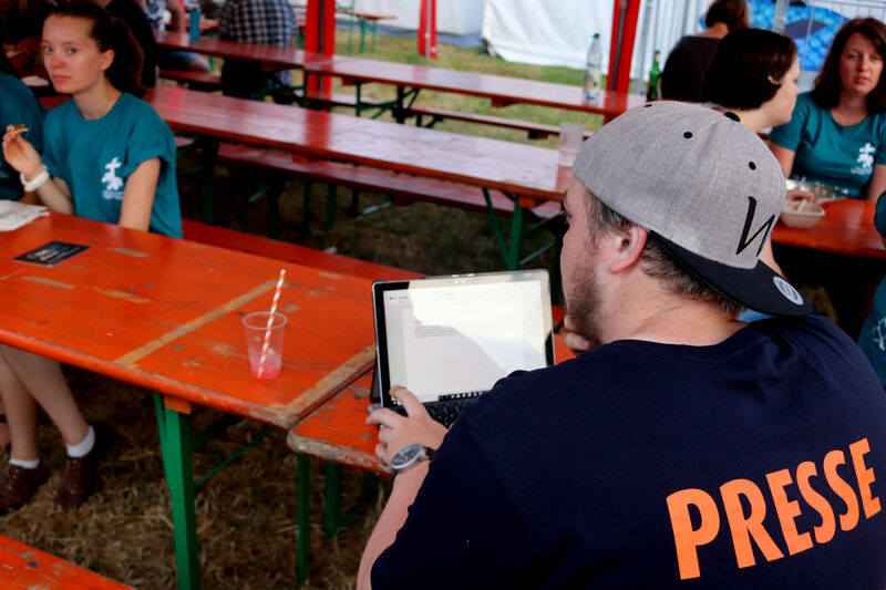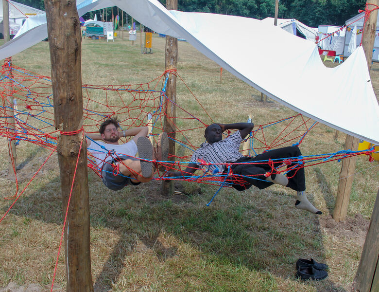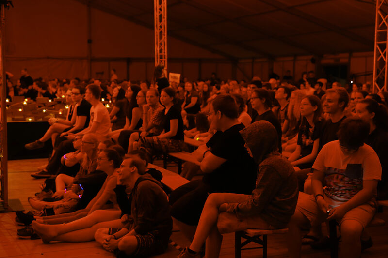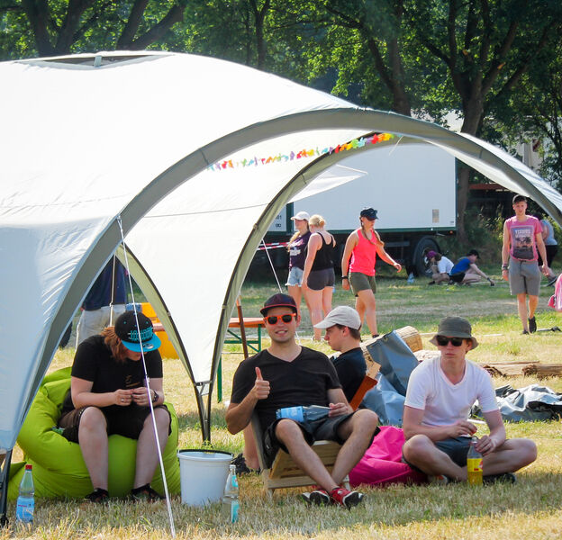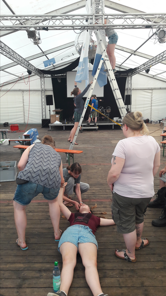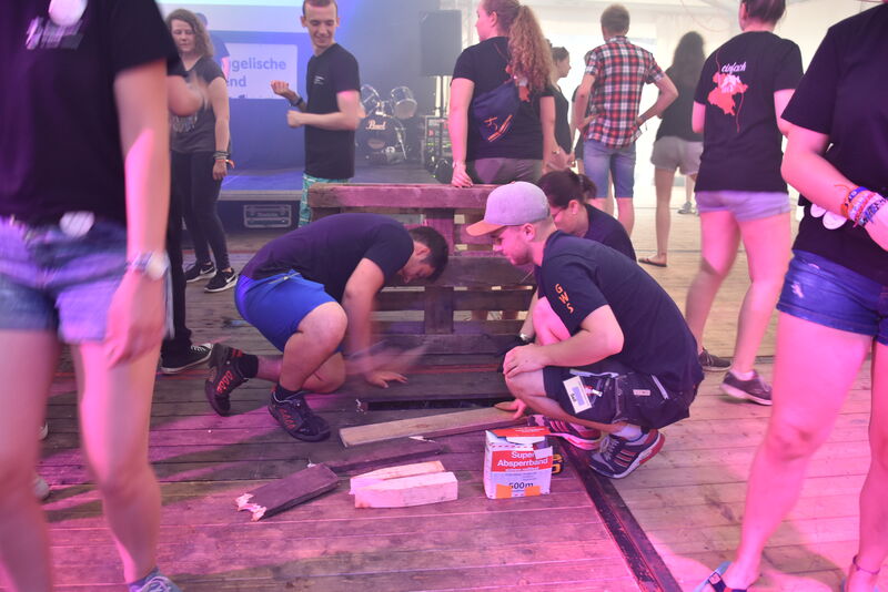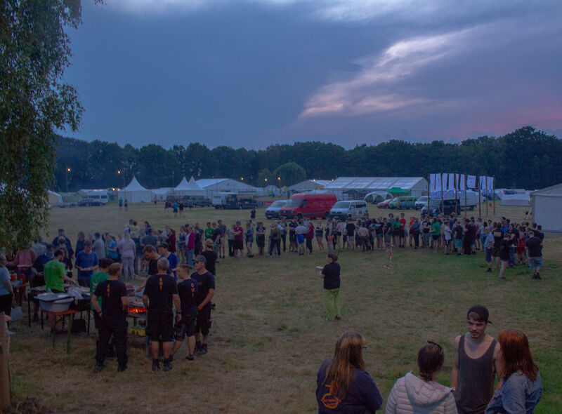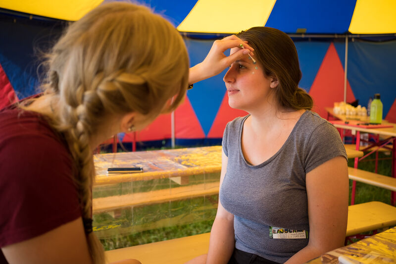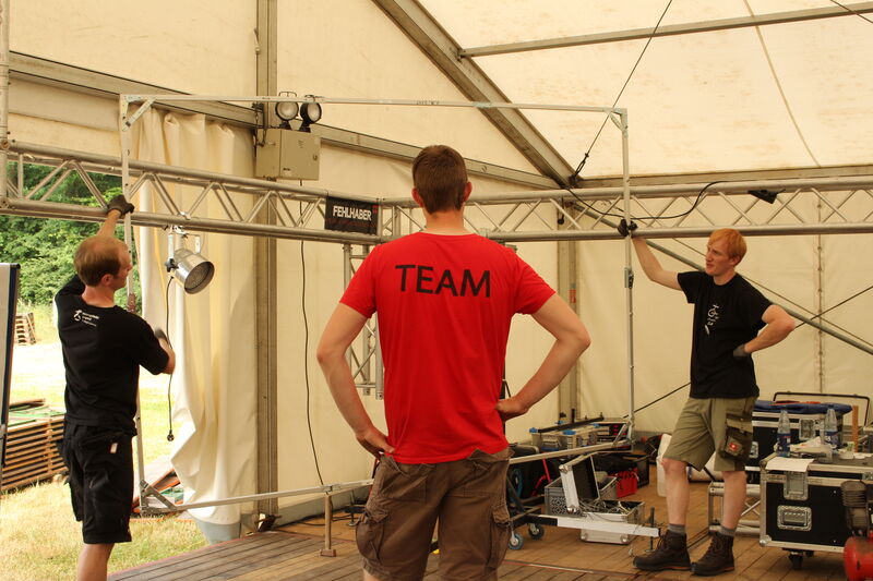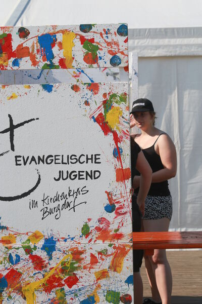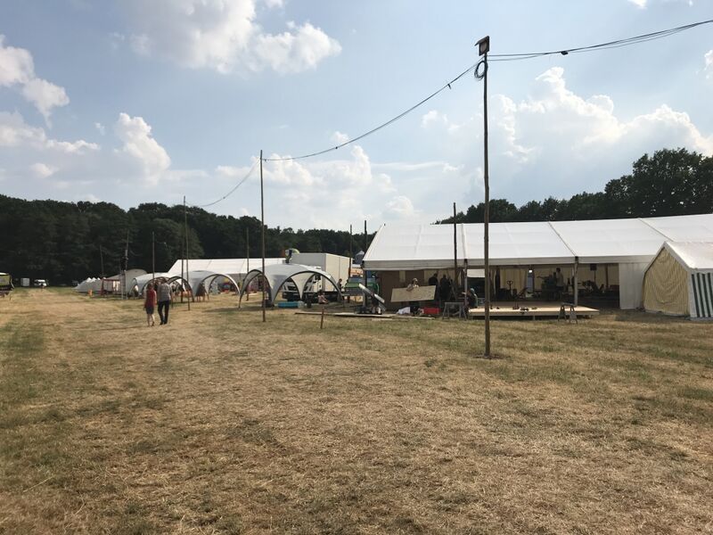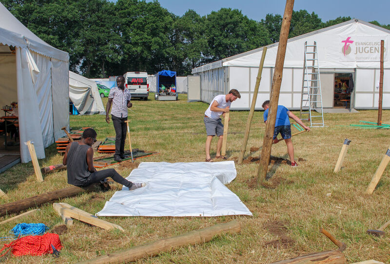 Das Camp wurde vorher von dem so genannten Vorcamp fleißig aufgebaut so dass mit der Ankunft der Teilnehmer alles los gehen konnte. Als erstes bekamen wir alle unsere Festivalbändchen und konnten anschließend unsere Zelte beziehen. Als alle ihren Platz gefunden hatten, gab es ein kurzes einfaches Abendbrot, wo die ersten wichtigen Informationen für das Wochenende geklärt wurden. Um 19:30 Uhr gab es dann im Großzelt die offizielle Eröffnung des diesjährigen Camp. Im Anschluss darauf gab es die Möglichkeit das Campgelände zu erkunden und in den unterschiedlichen Sprengeln die unterschiedlichen Angebote wie die Silentparty im Sprengel Stade oder die Disco in unserem Lüneburger Sprengel auszuprobieren. Um 23:00 Uhr herrschte im Großzelt eine ruhige Atmosphäre. Der Taizè Gottesdienst fand statt und lockte vorallem die, die bereits in Taizè waren an.