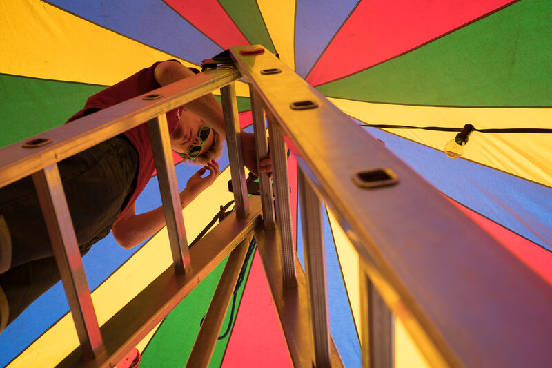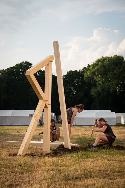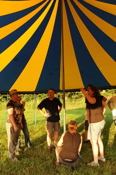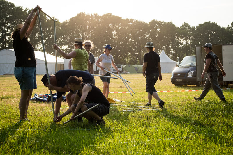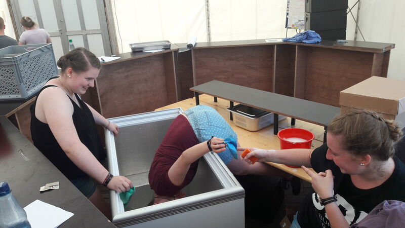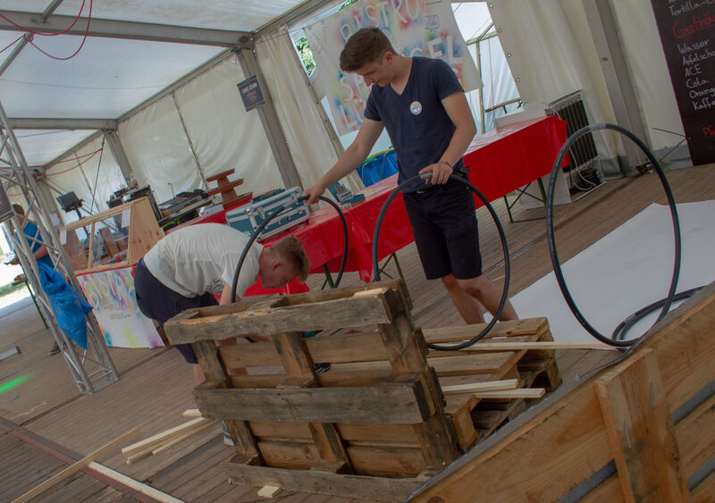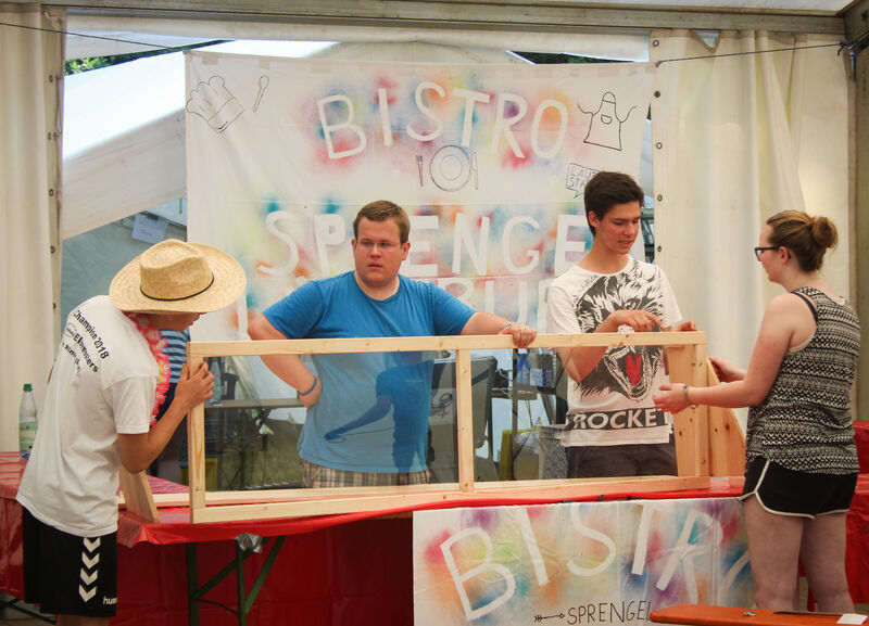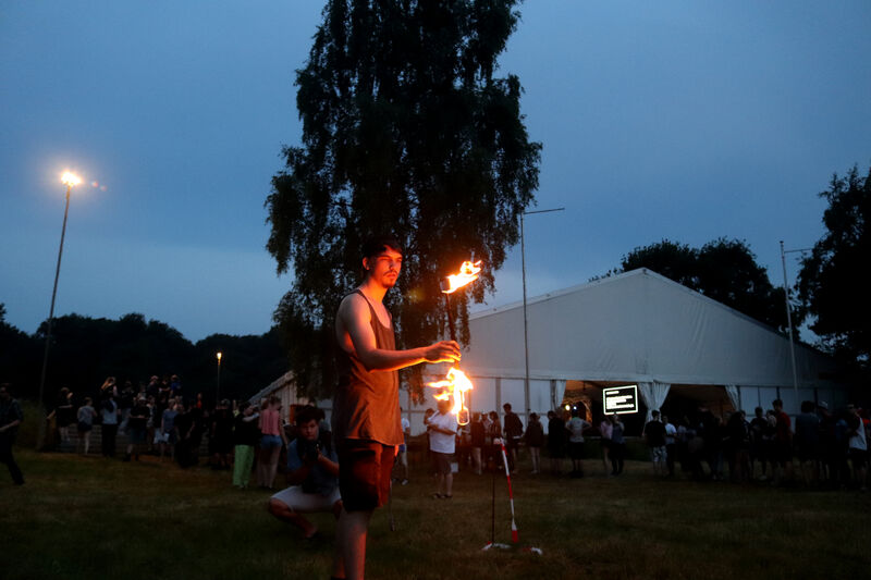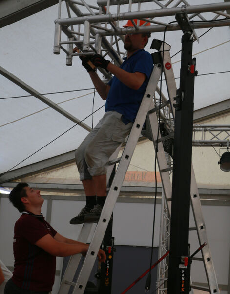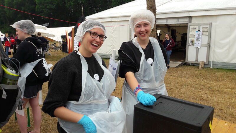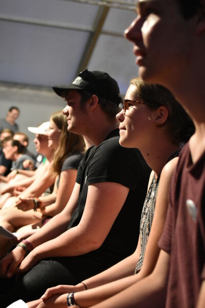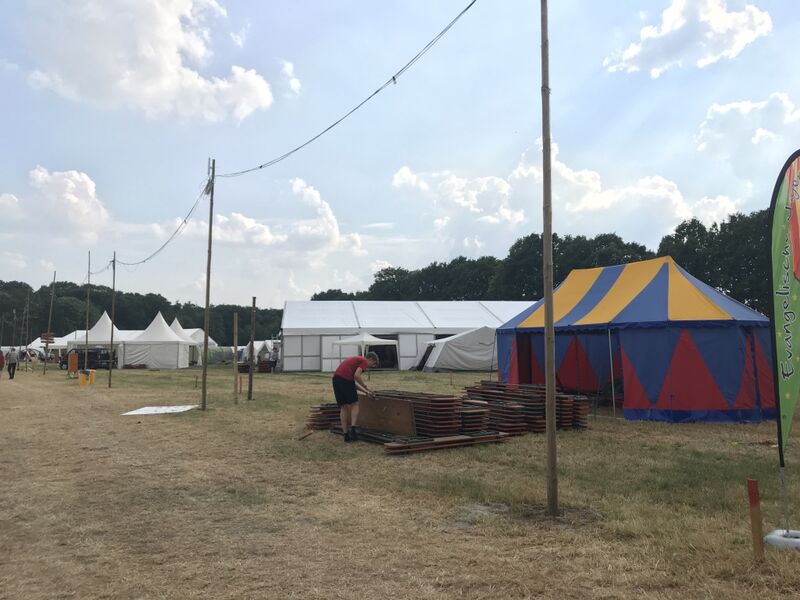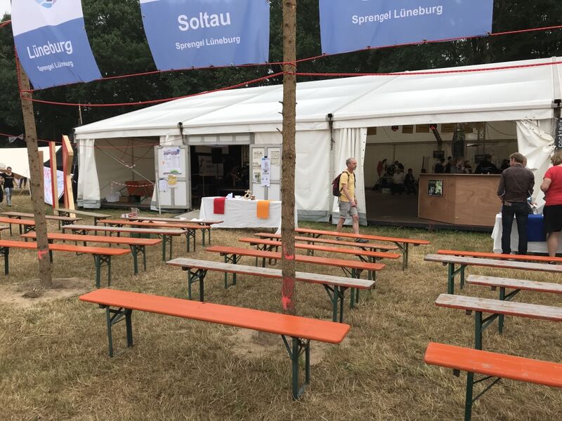 Das Camp wurde vorher von dem so genannten Vorcamp fleißig aufgebaut so dass mit der Ankunft der Teilnehmer alles los gehen konnte. Als erstes bekamen wir alle unsere Festivalbändchen und konnten anschließend unsere Zelte beziehen. Als alle ihren Platz gefunden hatten, gab es ein kurzes einfaches Abendbrot, wo die ersten wichtigen Informationen für das Wochenende geklärt wurden. Um 19:30 Uhr gab es dann im Großzelt die offizielle Eröffnung des diesjährigen Camp. Im Anschluss darauf gab es die Möglichkeit das Campgelände zu erkunden und in den unterschiedlichen Sprengeln die unterschiedlichen Angebote wie die Silentparty im Sprengel Stade oder die Disco in unserem Lüneburger Sprengel auszuprobieren. Um 23:00 Uhr herrschte im Großzelt eine ruhige Atmosphäre. Der Taizè Gottesdienst fand statt und lockte vorallem die, die bereits in Taizè waren an.