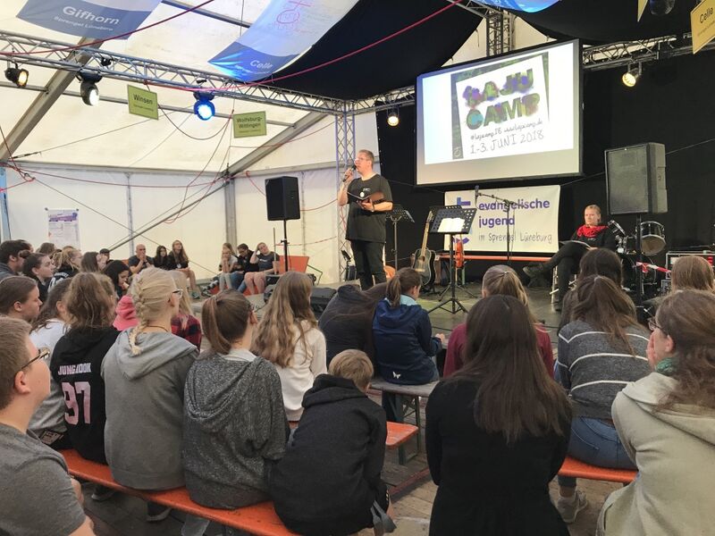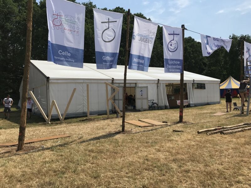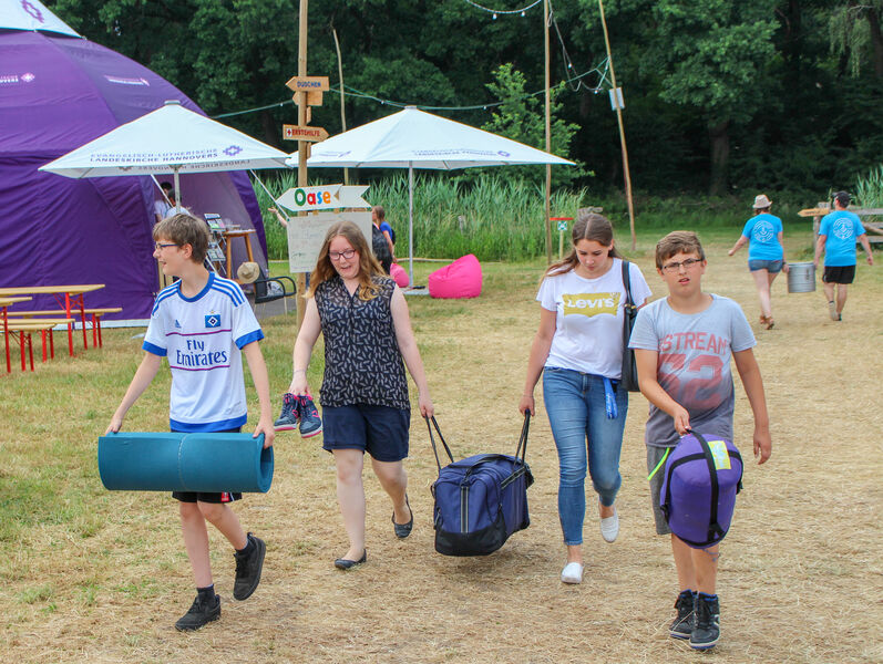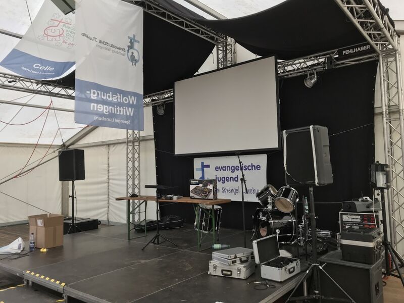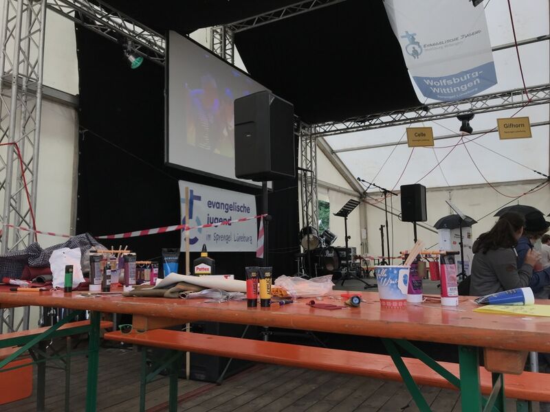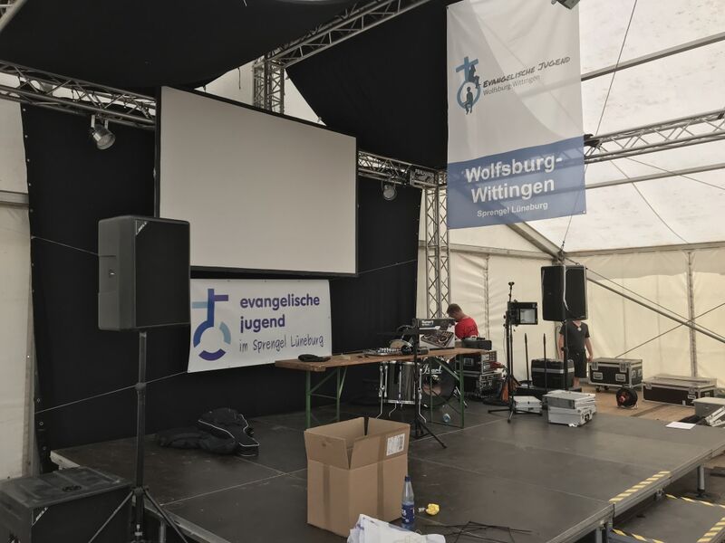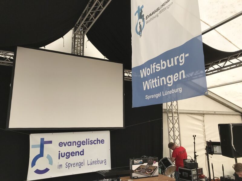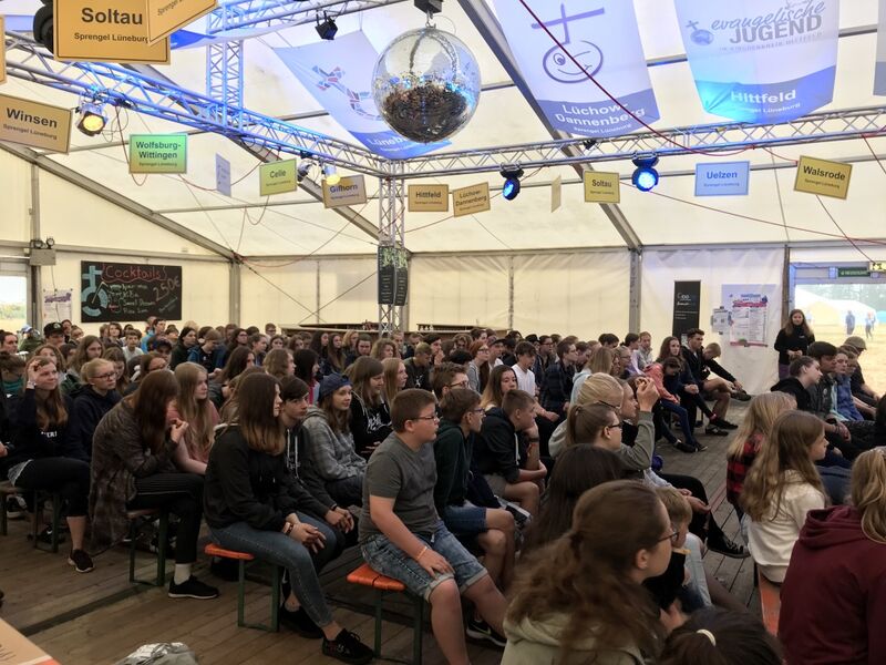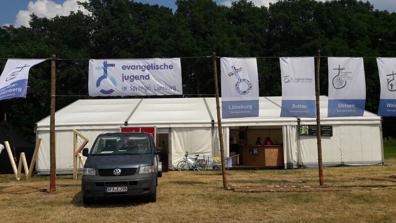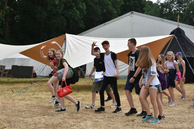 Am ersten Juni Wochenende ging es mit unserem Kirchenkreis zum Landesjugendcamp in Verden. Das Camp findet alle zwei Jahre statt. Dieses Jahr war das Motto ,,LAUTSTARK“ und passend dazu gab es einen Campeigenen Song der uns das Wochenende begleitet hat. Für die Teilnehmer ging es um 14:45 Uhr mit einem Reisebus aus Jembke los. Gegen 18:00 Uhr traf der Bus in Verden ein. Mit einem Trecker und Anhänger wurde das Gepäck vom Bus aus bis zu unserem Zeltplatz gebracht.