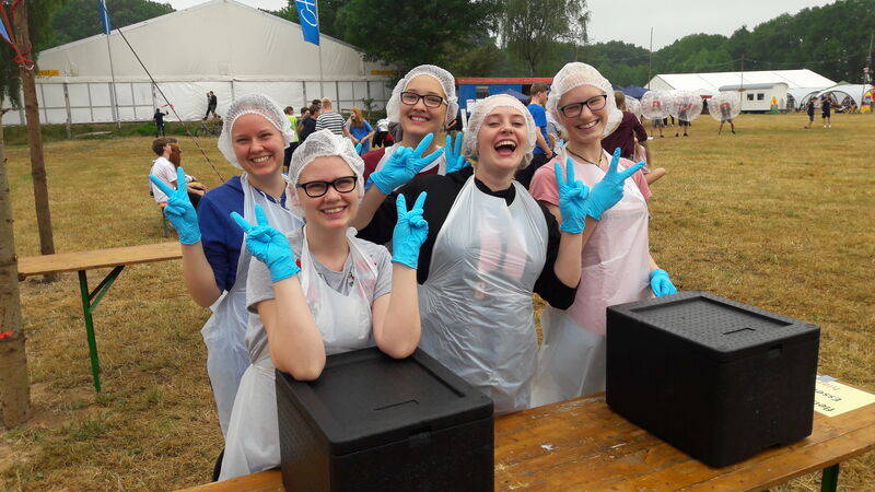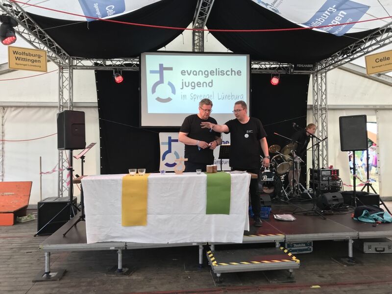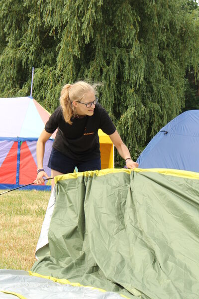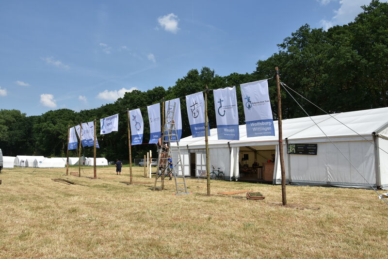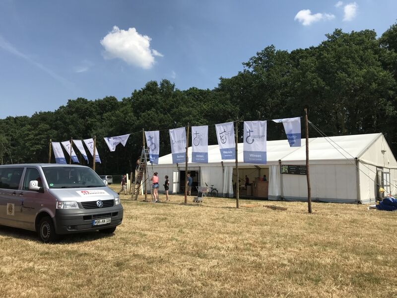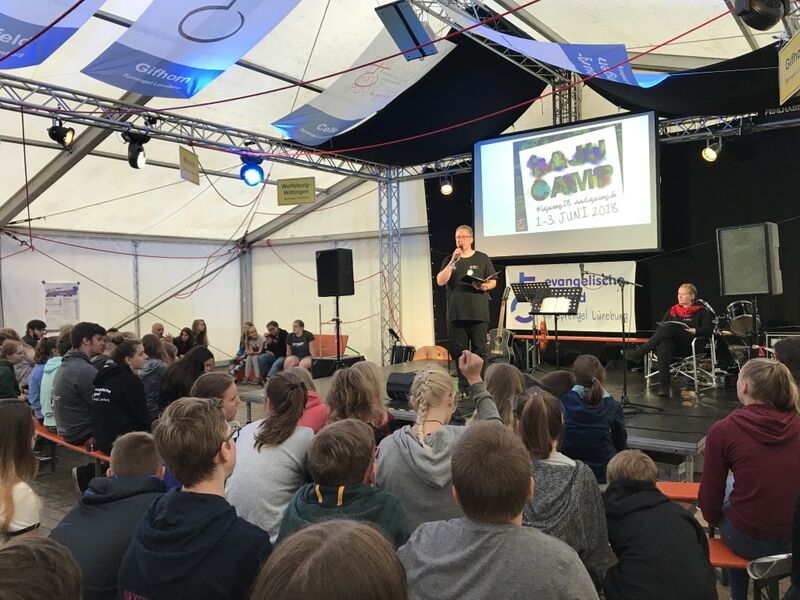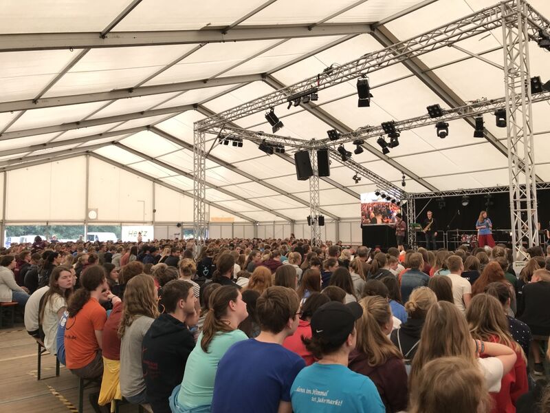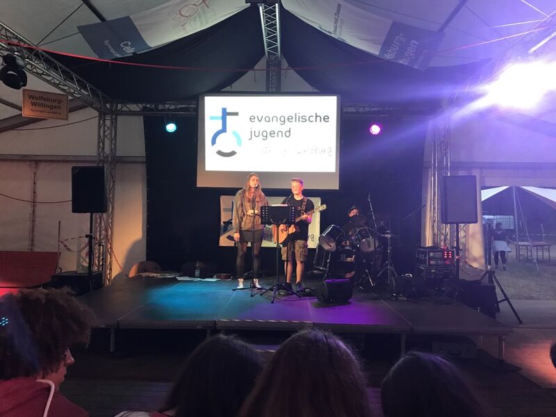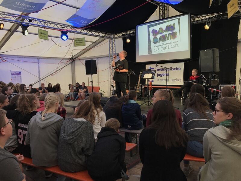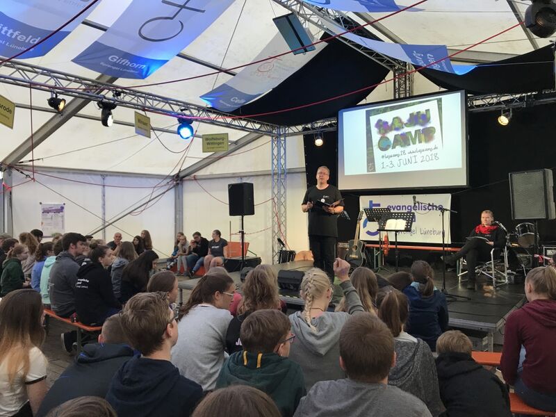 Am ersten Juni Wochenende ging es mit unserem Kirchenkreis zum Landesjugendcamp in Verden. Das Camp findet alle zwei Jahre statt. Dieses Jahr war das Motto ,,LAUTSTARK“ und passend dazu gab es einen Campeigenen Song der uns das Wochenende begleitet hat. Für die Teilnehmer ging es um 14:45 Uhr mit einem Reisebus aus Jembke los. Gegen 18:00 Uhr traf der Bus in Verden ein. Mit einem Trecker und Anhänger wurde das Gepäck vom Bus aus bis zu unserem Zeltplatz gebracht.