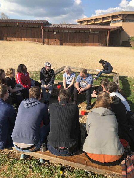 Das diesjährige Zwischenziel war eine kleine Jugendherberge in Breisach am Rhein in der Nähe von Freiburg. Am nächsten Morgen machten wir uns dann weiter auf den Weg nach Taizé. Kurz vor Taizé trafen wir uns mit den Lüneburgern und fuhren das letzte kleine Stück gemeinsam.