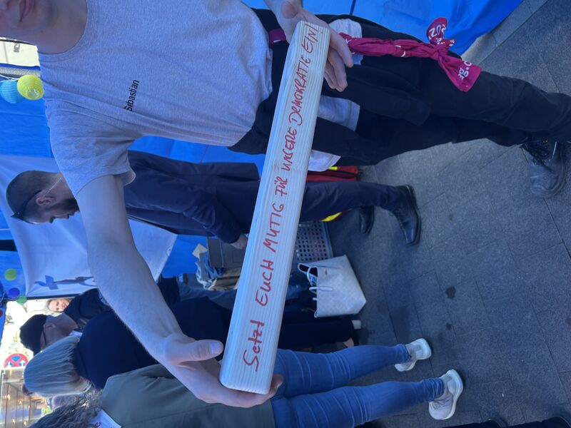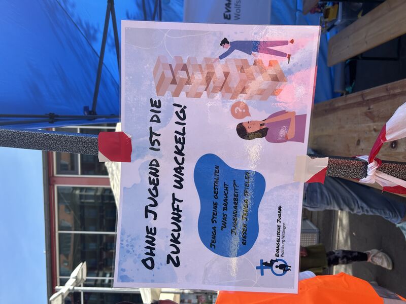 Durch unsere drei Standaktionen “Haltet euch fest“ -einem Fotostand, “Ohne Jugend ist die Zukunft wackelig“ - einem selbstgebauten und mit Wünschen für die Jugendarbeit zu gestaltenen Jengaturm und “Chill doch mal“ - einem Platz zur Entspannung, entstanden viele schöne Momente und vor allem tolle Gespräche.